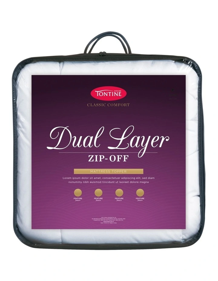 The box stitch pattern with border keeps the fill in place for a more comfortable nights sleep. Gusset allows for generous filling while the satin piping gives a classic finish. The zip closure around the whole topper allows the user to remove the top quilted layer for cleaning while leaving the fitted skirt on the bed. Once the top layer has been cleaned you simply zip it back to the base. Easy fitted skirt ensures minimal movement.