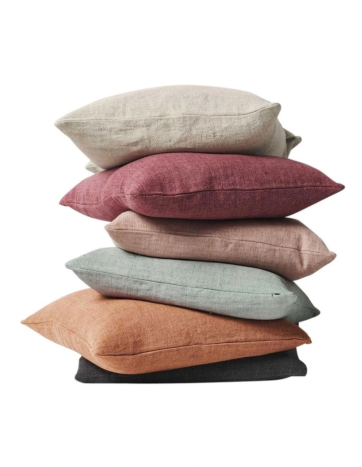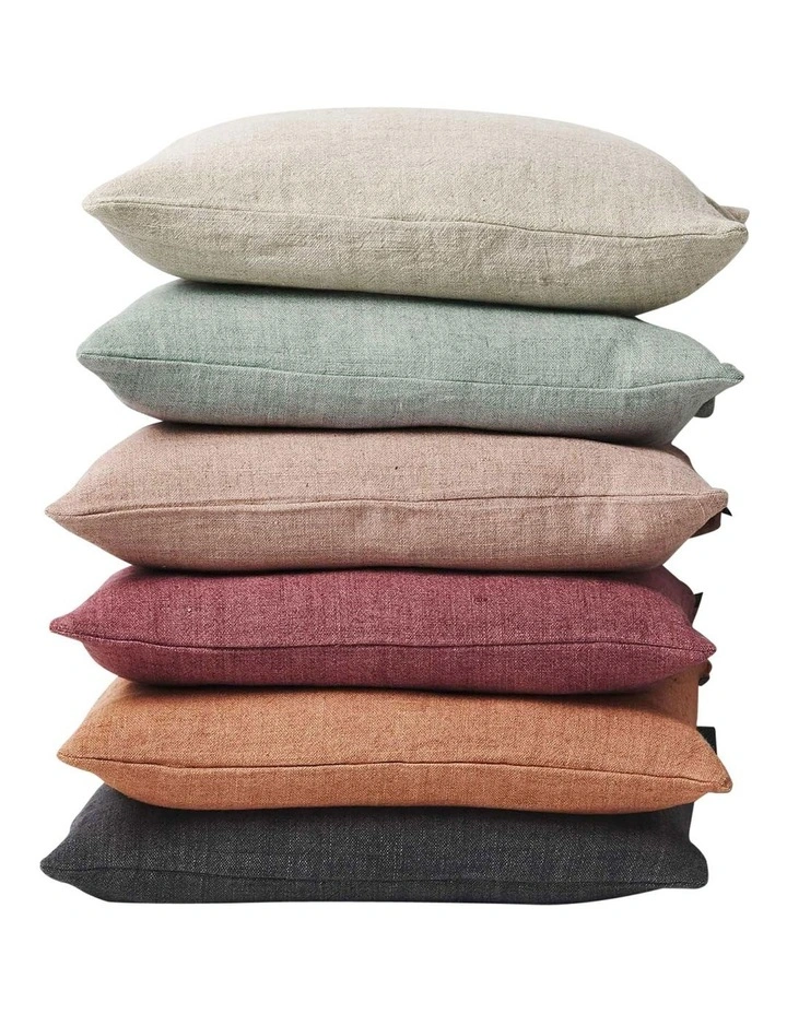 Aura’s Heavy Linen cushions are hand crafted by skilled artisans. They have a rich textural finish, resulting in an effortless luxury. Perfect for layering on your sofa or bed, each cushion features a zip closure and includes a luxury feather insert. Linen is also an eco-friendly and bio-degradable fibre that does not require irrigation to grow. Natural fabric dyes and all by-products used in dying, including water and fabric offcuts are recycled and reused.