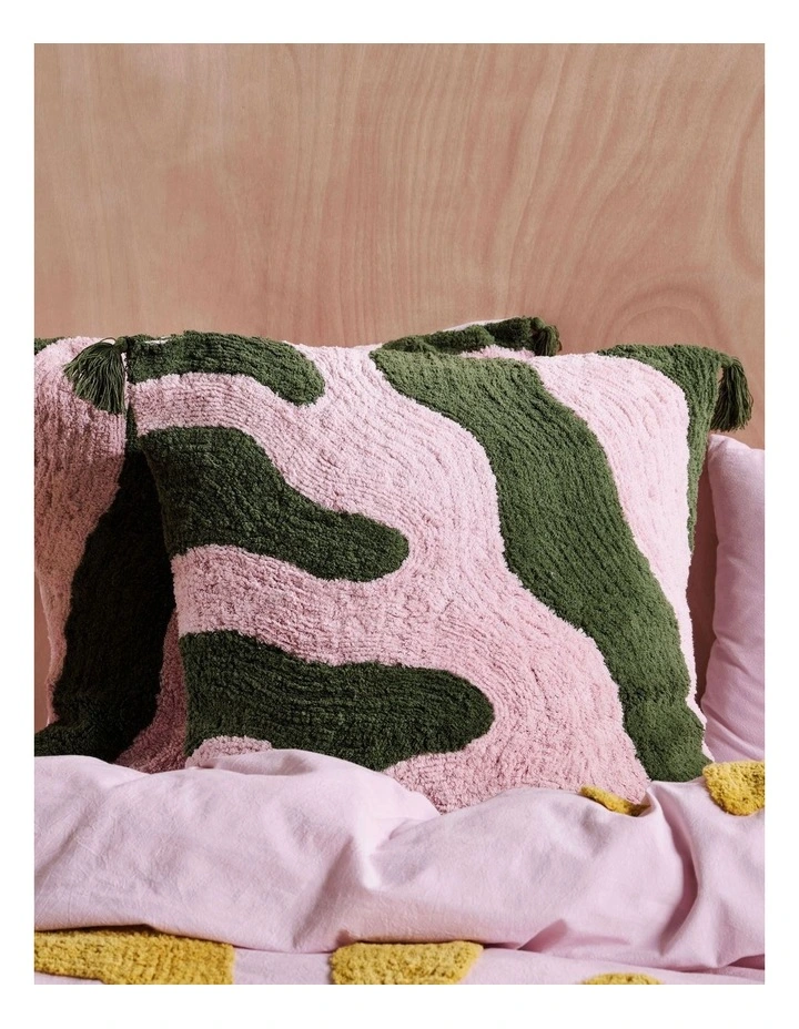 A stylised vine design in an energetic palette, its textured quality works beautifully paired with coordinating European pillowcases and its tufted cushion for more texture.