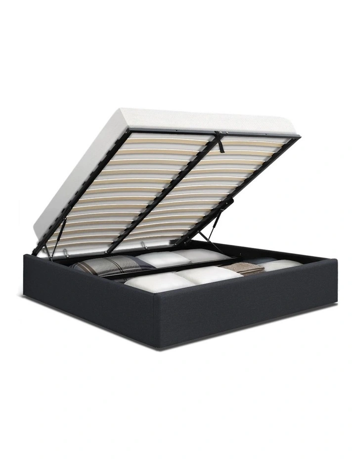 Our Toki Gas-Lift Bed Frame combines exquisite style with great storage practicality. The frame is built with reinforced steel construction while the wooden arched slat frame helps to distribute weight evenly across the framework. Heavy-duty connectors are used throughout the frame to increase its durability and reliability with long -term robust use. And for an elegant finish, the bed frame is padded with high-density foam and upholstered with premium linen fabric. Best of all, the bed frame comes with a gas-lift storage system where you will find acres of space underneath the slatted frame to store all your bedroom and home essentials. And if so desired, the bed frame can be matched with our complementary bed head for a complete look. The bed frame is designed to fit standard Australian-sized mattress.
