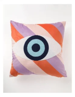 Beau & Bonnie Third Eye Velvet & Embroidery Cushion in Multi: 50×50 cm
